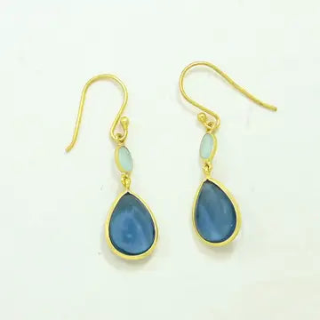 Blue Lolite and Aqua Chalcedony Drop Earrings