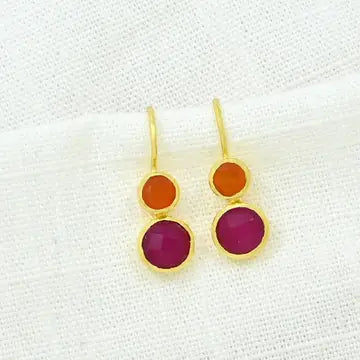 Pink Jade and Orange Carnelian Drop Earrings