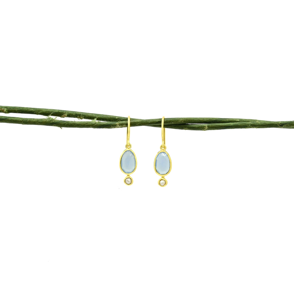 Pearl and Blue Chalcedony Drop Earrings